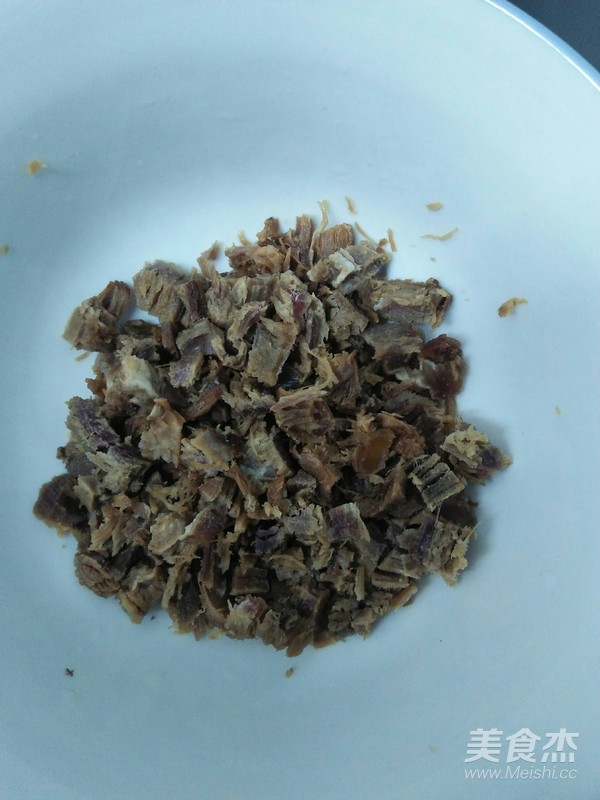 五香牛肉用廚房剪剪碎。