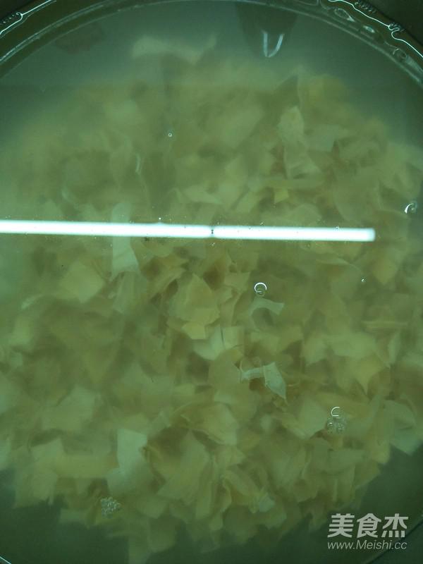 筍干用熱水泡半個小時,再把它剪碎。