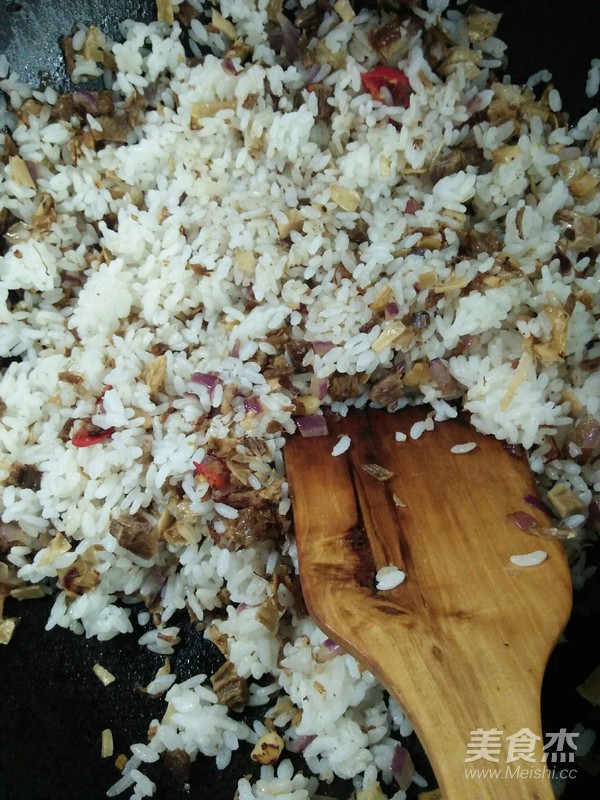 加入米飯炒散。