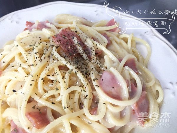 煮面條的同時(shí)將培根切一切 然后面條煮到8分鐘左右的時(shí)候 另起一個(gè)鍋 加入一點(diǎn)點(diǎn)橄欖油將培根煎出香味