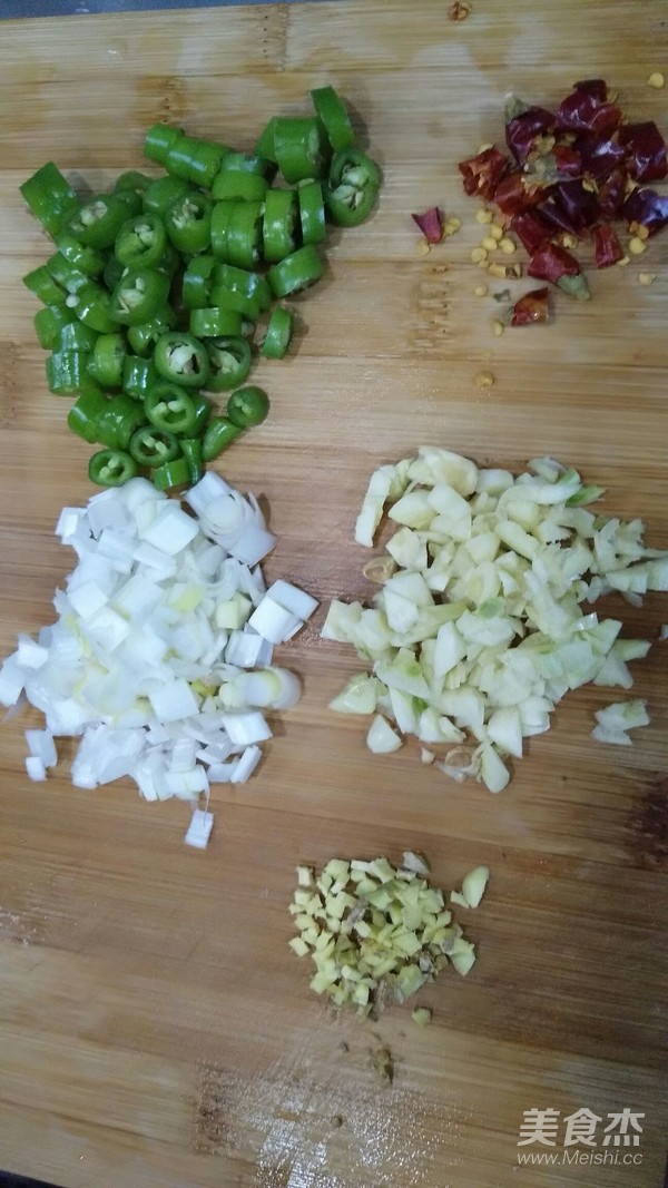 杭椒 蒜 蔥 姜 紅辣椒 切米備用