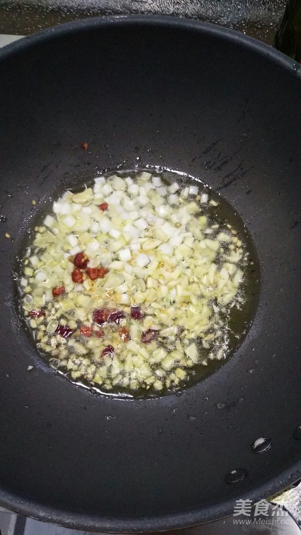 加入蔥花 蒜米 姜米 紅辣椒 爆出香味
