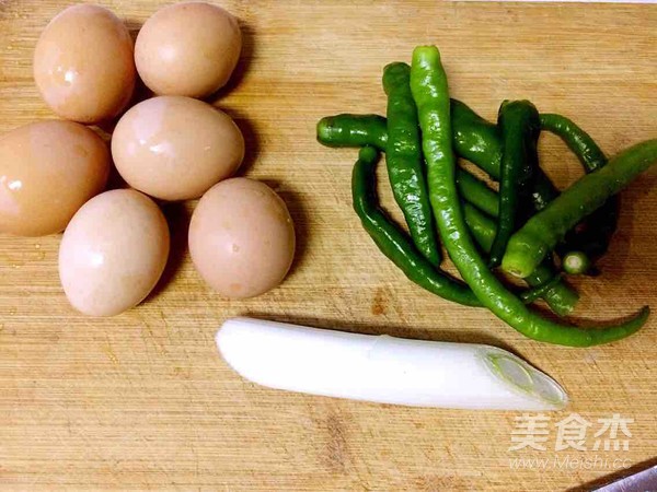 因為柴雞蛋比較小,所以用了6個,至于辣椒,喜歡吃辣椒的多放些(雞蛋降辣椒),比較愛吃雞蛋多些的就少放點辣椒;