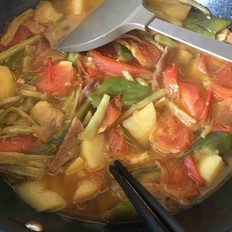 6.當豆角5成熟放入土豆塊 繼續翻炒