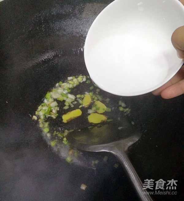 3.鍋中倒入適量的食用油,油熱后爆香蔥花和姜片。