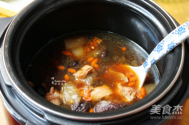 加入適量的水、雞粉按煲湯鍵,約45分鐘即可;PS:壓力鍋不同,時間略有不同
