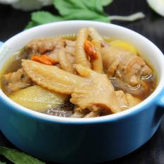 當歸土雞湯 原料:土雞、當歸、花生仁、紅棗、黑木耳、姜片。 做法: 1、將土雞切塊,用清水洗凈備用。 2、鍋內加清水燒開,倒入雞塊焯掉血水后撈起。 3、將焯好水的雞塊放入高壓鍋,加水(水沒雞肉約1公分的量),加入姜片,當歸,花生仁,黑木耳一起燉。 4、高壓鍋氣閥響約40分鐘即可關火