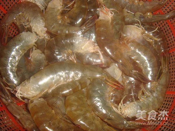 注:我買的是明蝦,明蝦的頭中間有一個黑色的包,那里面有泥沙,所以炒之前最好把頭剪掉,