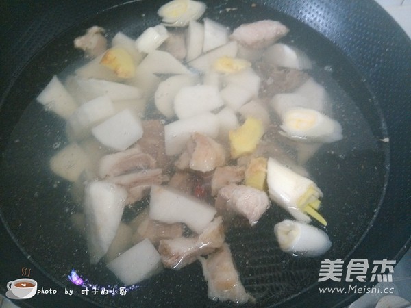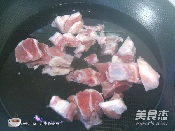 鍋里加入適量水,加入適量料酒,放入羊排焯水