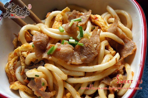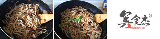 6.倒入備用的烏冬面,快速翻炒