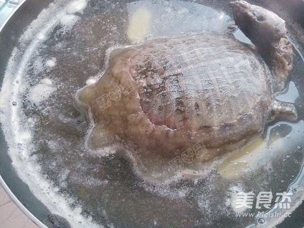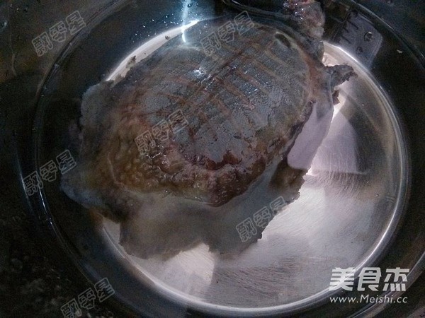將甲魚放入冷水鍋中,加入姜片和料酒