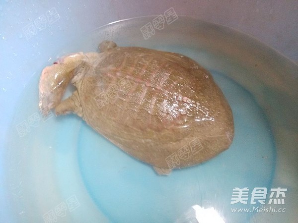 然后撈出甲魚,刮去甲魚身上的粗皮