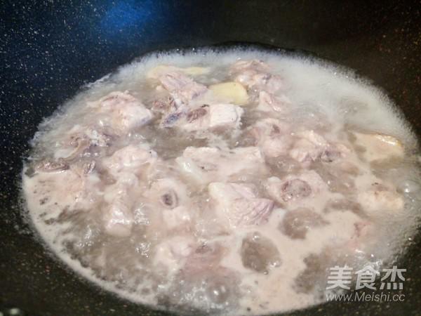 鍋里放少許水放排骨生姜,料酒焯水,焯過水的排骨洗干凈