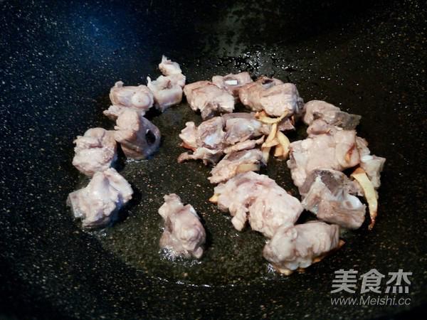 鍋里放少許油,爆香生姜蒜,放排骨翻炒幾下