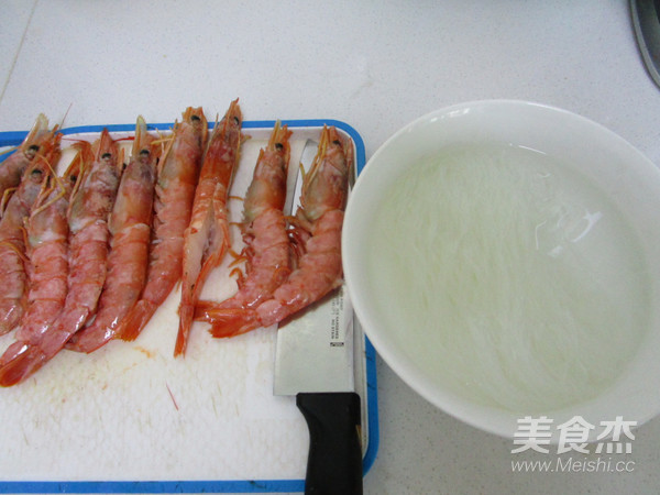 把蝦去掉蝦須后再開背去蝦線后洗凈,粉絲用沸水泡發后洗凈