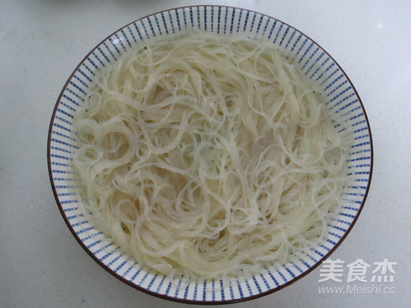 粉絲放入盤里,倒入少許蒸魚豉油拌勻