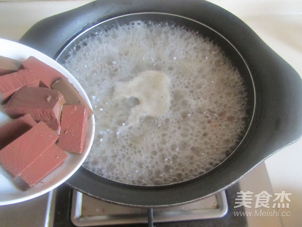 9.最后放入鴨血進去煮上半分鐘即可,盛入碗中,表面撒上小蔥末。