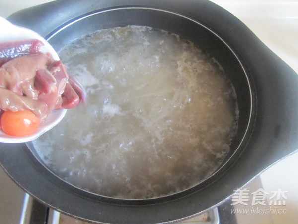 3.將處理好的鴨子、姜片放入鍋中, 加入適量的水;