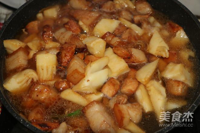 大火燒開,小火慢燉40分鐘,豬肉軟爛后,大火收汁。