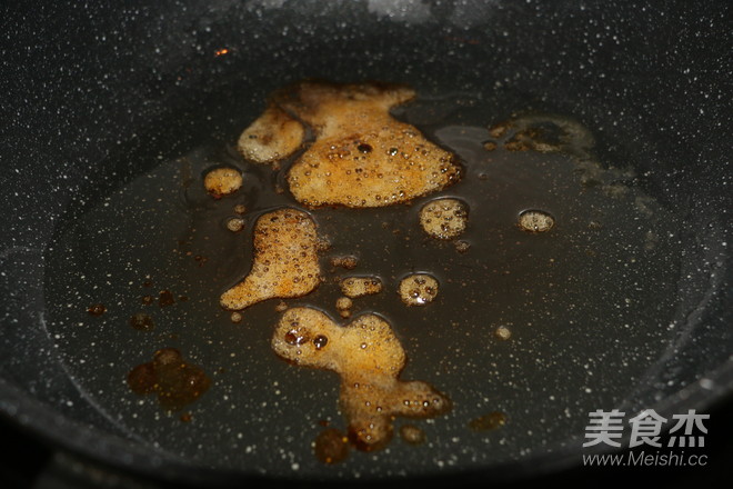 加入冰糖,小火炒至糖變成褐色,起小泡泡。