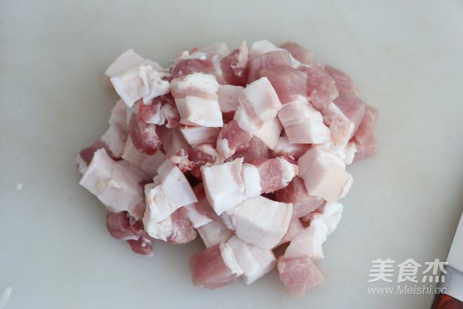豬肉冷水下鍋,水開后煮3分鐘,撇去浮沫,沖洗干凈,撈出備用。