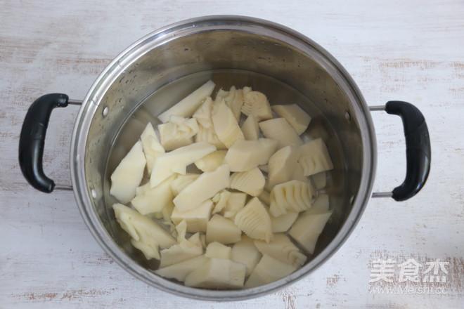 將冬筍放入水中,開水焯燙3-5分鐘。