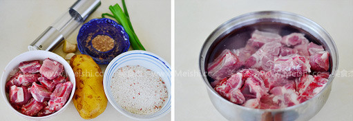 8.把裹好的排骨和土豆倒入碗里,上鍋中蒸制45分鐘左右即可