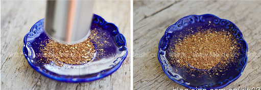 4.糯米泡水1小時晾干后,用研磨器2檔研碎