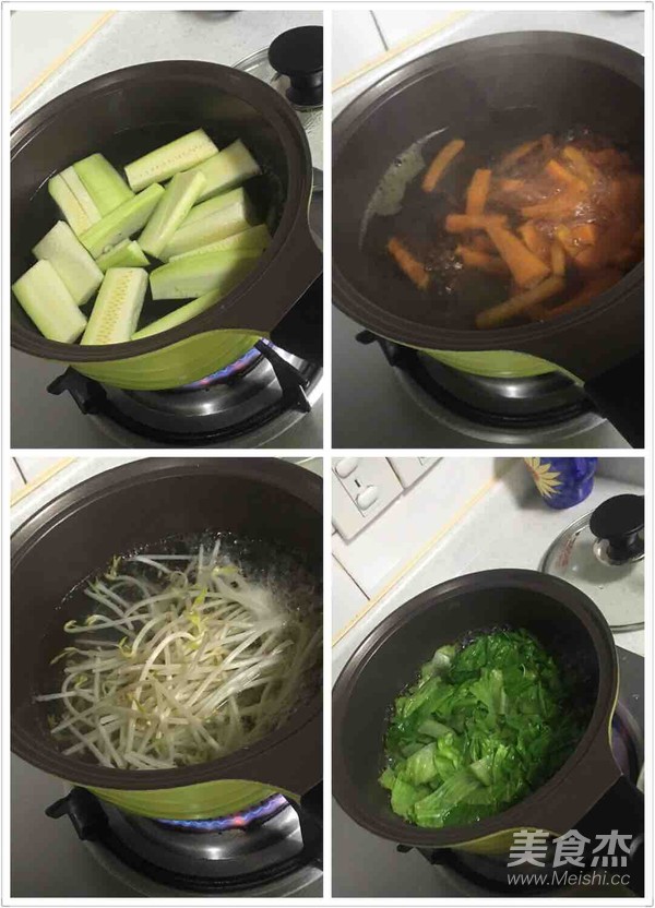 9.西葫蘆,胡蘿卜,豆芽,木耳分別過水川熟。