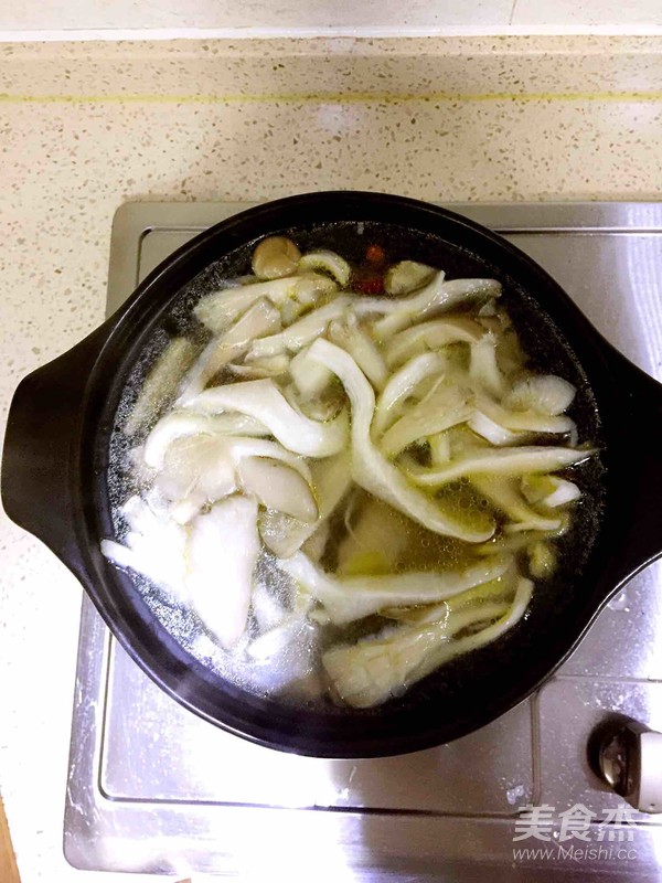 雞大火燒開大概5分鐘后,放平菇,再小火燉大概40分鐘左右