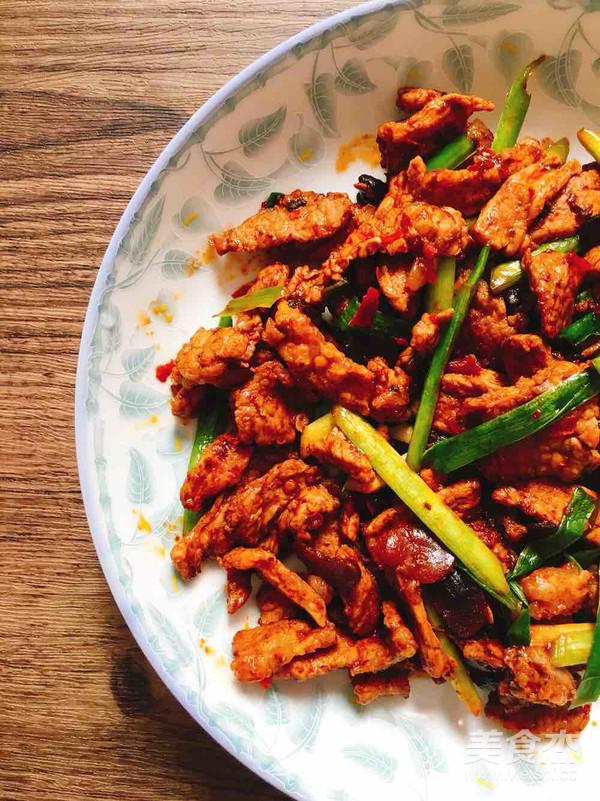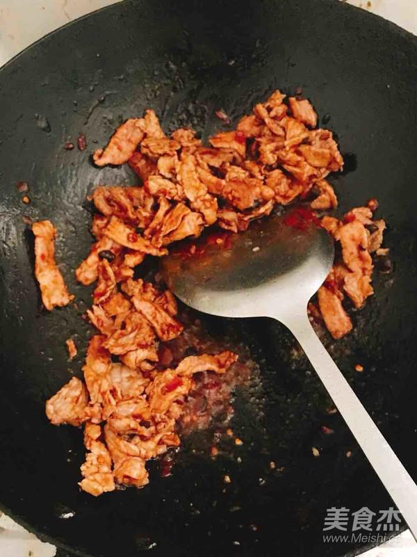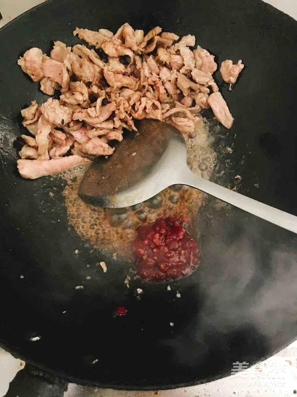將肉推到一邊,放入郫縣豆瓣醬炒香