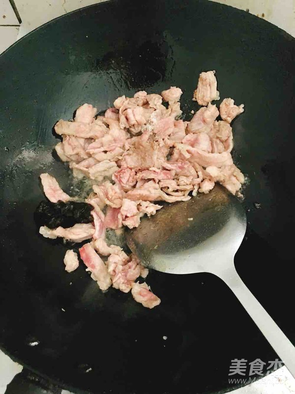 熱鍋熱油,下入肉片翻炒至斷生