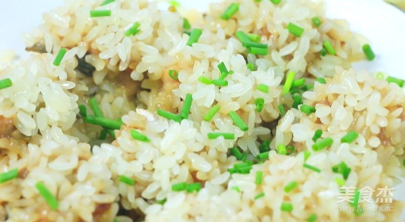 6. 最后在排骨上再撒一層糯米覆蓋住排骨,糯米吸進了排骨的香味和肉味,比肉還好吃,而且多一點糯米也能解解膩。