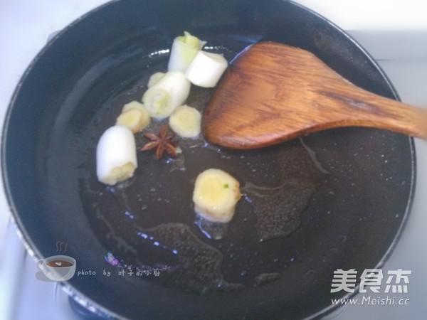 鍋里加入少許油,放入生姜、大蔥、八角炒香