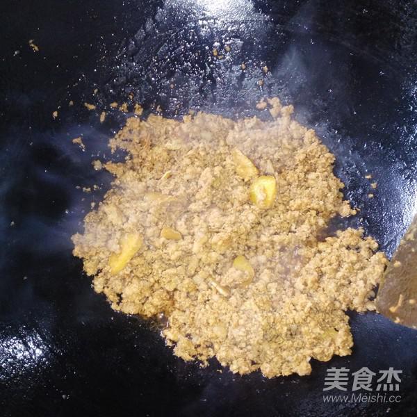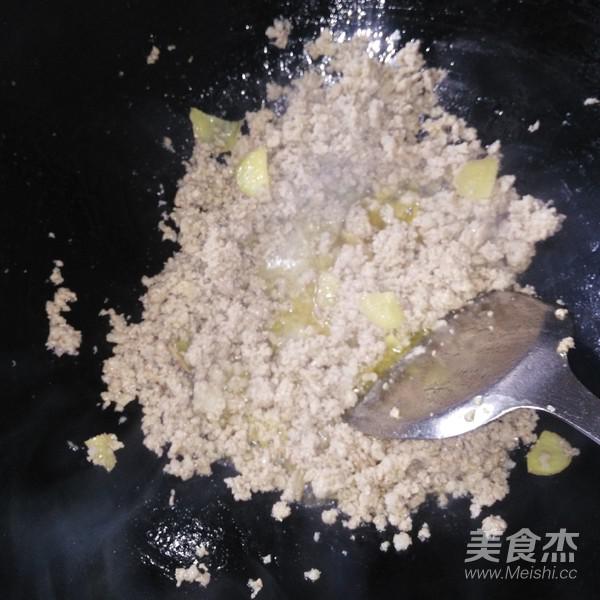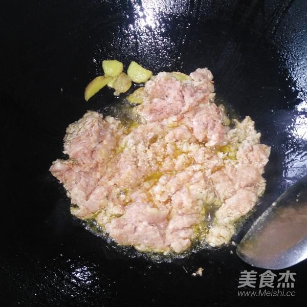 鍋里放油,姜片燒熱倒入肉沫