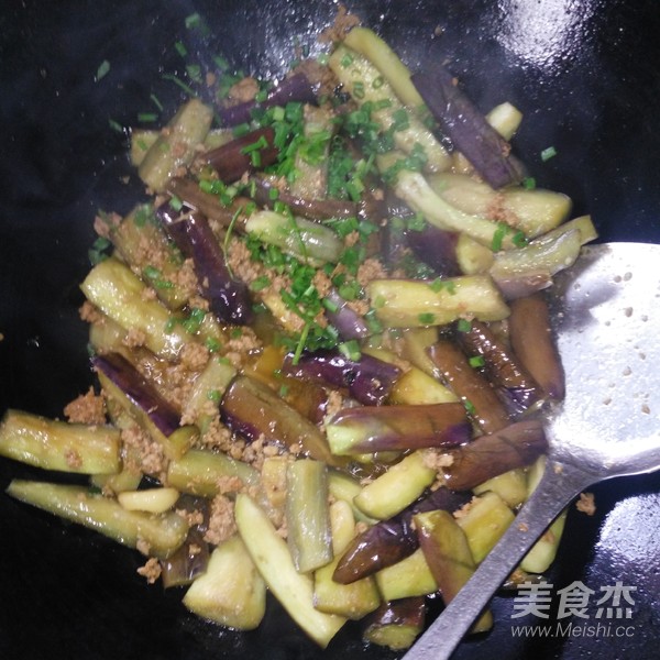 把肉沫倒進去蓋上中火燜至茄子變軟