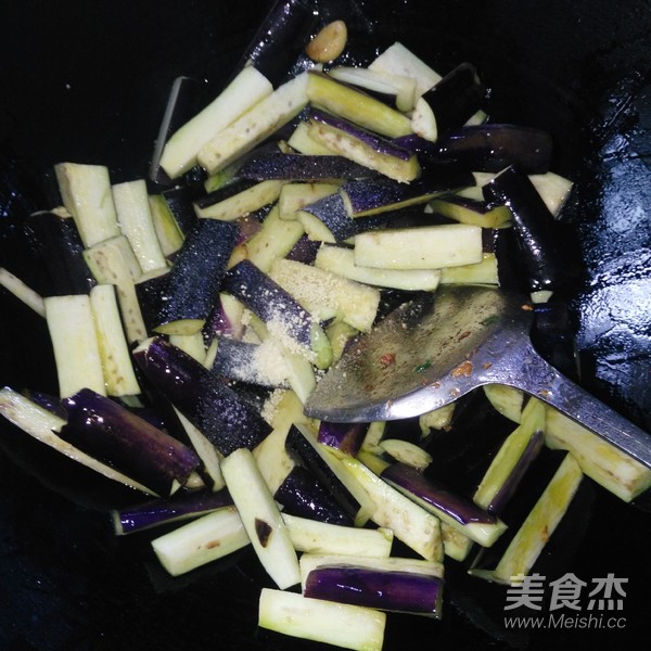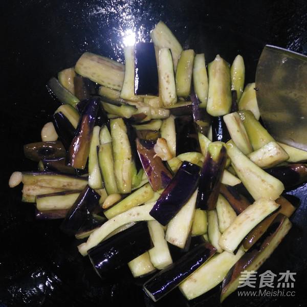 倒入茄條,放入適量鹽,翻炒
