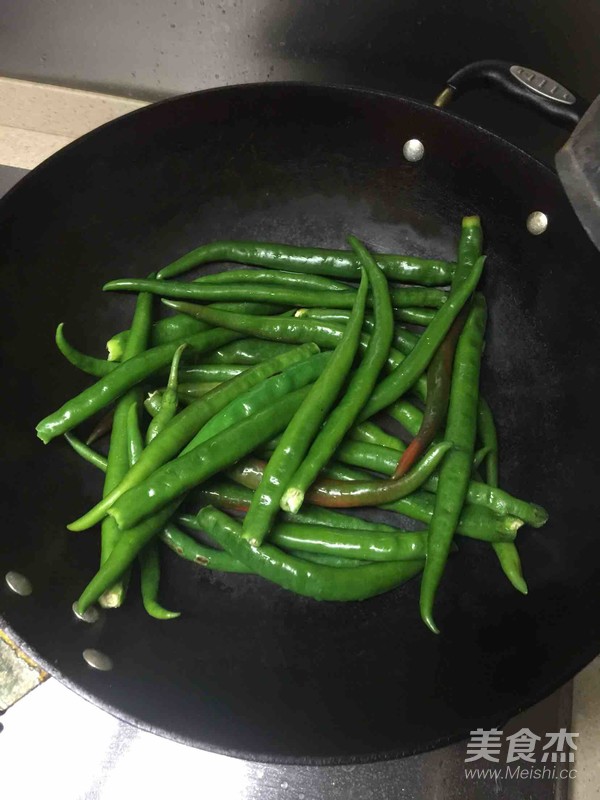 辣椒洗凈瀝干水分,鍋里不放任何東西,就辣椒干炒