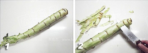 2.再將尾部細嫩的皮削干凈,只留下內(nèi)部青綠色的莖