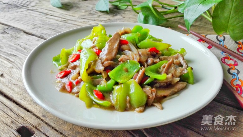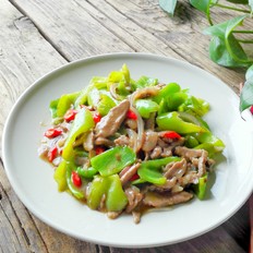 下炒好的牛肉絲翻炒,再加入小米辣、1勺料酒、鹽、半勺糖、1勺蠔油,翻炒出鍋
