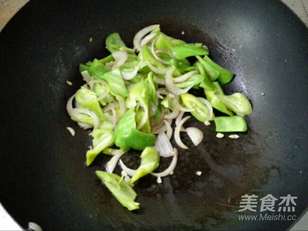 鍋中留少許底油,下蒜末、洋蔥爆香