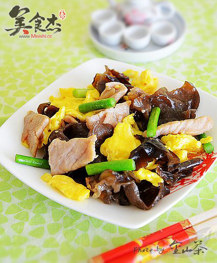 1.瘦豬肉切薄片,加少許鹽、料酒、水淀粉漿上腌制一會兒;泡發黑木耳去掉根部,撕成小塊備用;雞蛋打散,蒜薹洗凈切小段