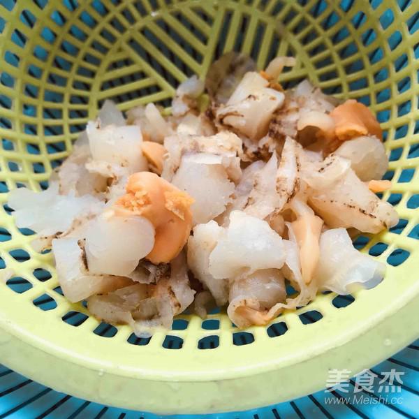 扇貝肉柱去腮,去腸,去粑粑,洗凈備用