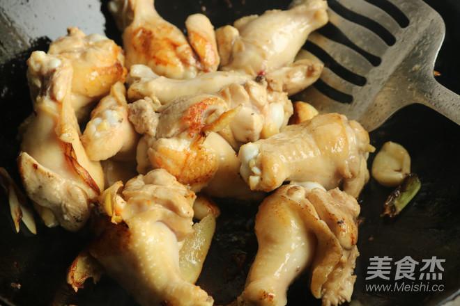 10.炒鍋放少許油,放入雞翅根煎香表面。