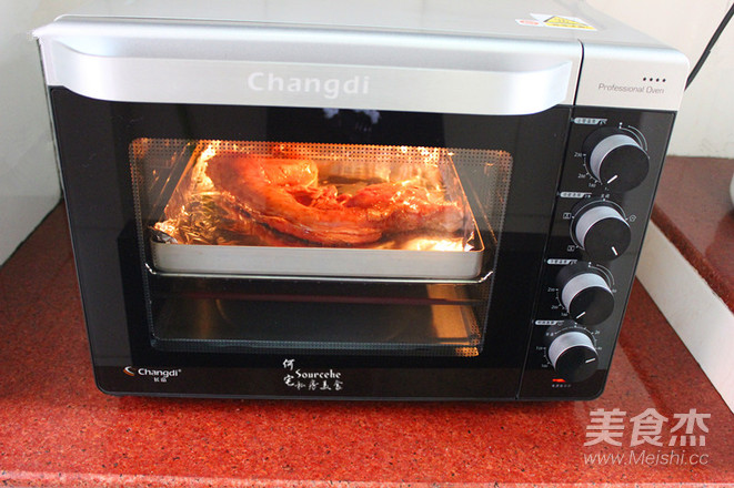 烤箱預熱,放入兔肉,190度,烤35分鐘。PS:每個烤箱不同,烤溫和時間略有不同。