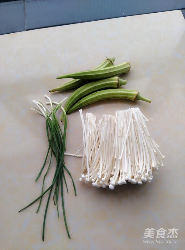 秋葵去蒂刷洗干凈,金針菇撕開洗凈