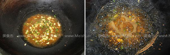 10.炸第二遍的時候可以另取一鍋,將做好的調料汁攪一攪倒入鍋中