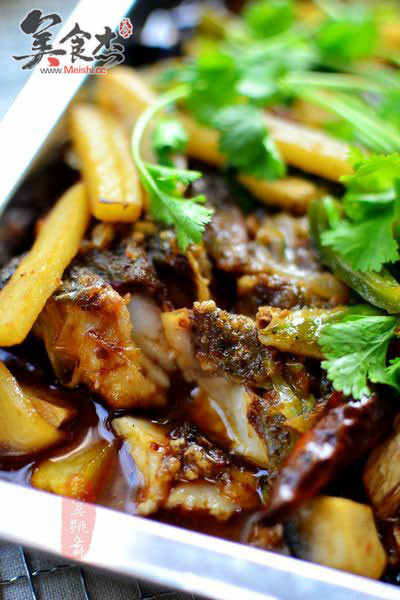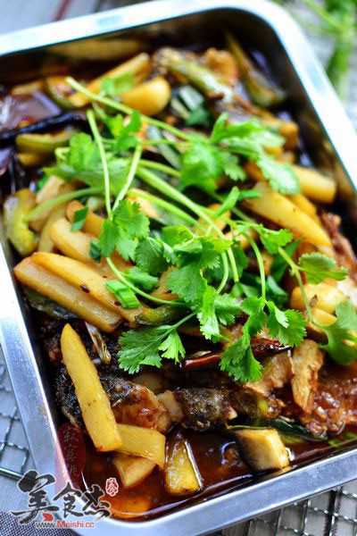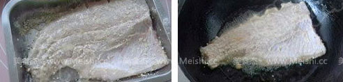 10.取一深盤,倒入一般燒好的輔料,將炸好的魚擺上
