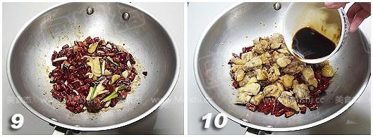 5.炒鍋燒熱了,放入少許油,涼油放入雞塊,用中火煸炒(如果有條件油炸的話,就將油燒熱,放入雞塊大火炸至金黃色撈出,再度把油燒熱, 放入雞塊復炸1分鐘,這樣效果會更好)