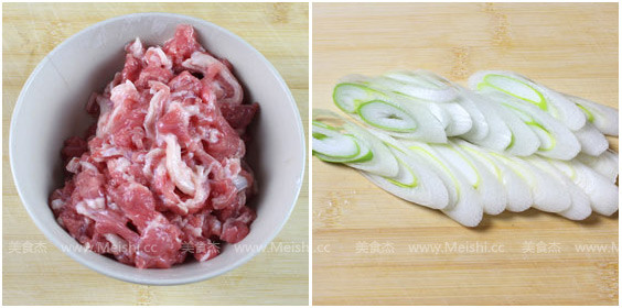 3.切完肉放料酒、鹽抓一下,然后加少許全蛋液抓勻,最后上一點淀粉抓勻就算腌好了